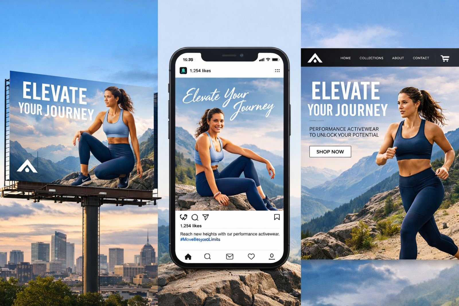 This test examines how GPT Image 1.5 adapts a single campaign idea across multiple platforms while keeping the brand look and message consistent.