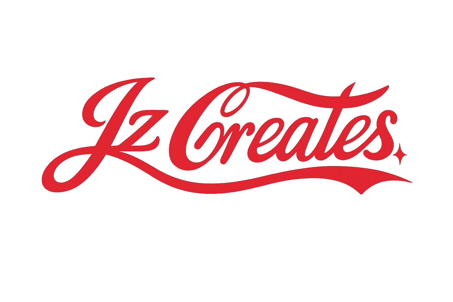 Create a logo with the words “Jz Creates” in the style of Coca-Cola.