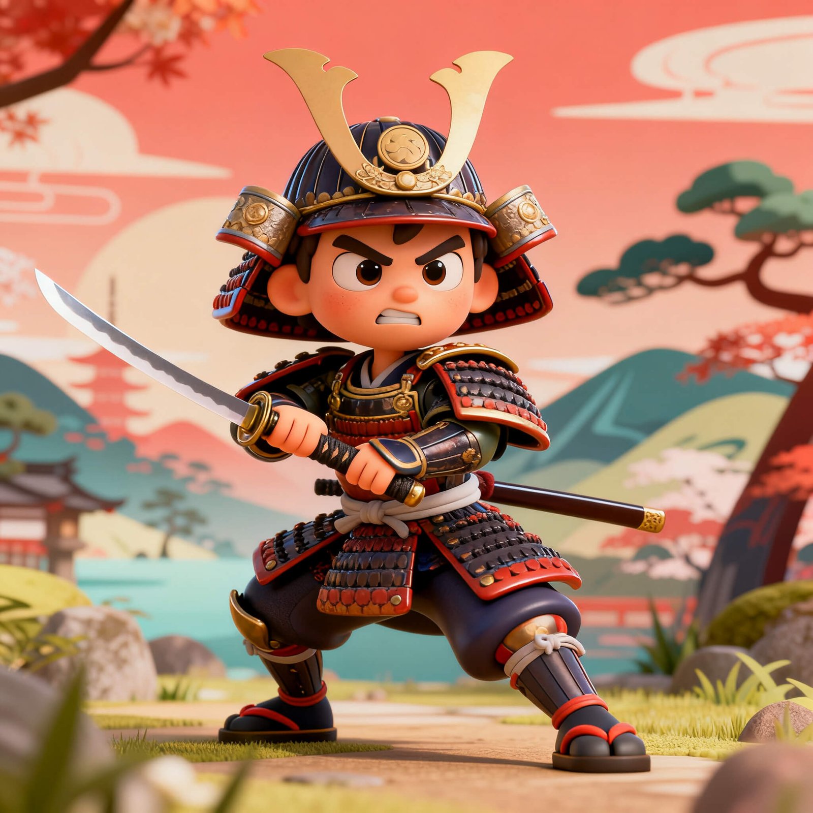 A samurai warrior in Pixar-style 3D